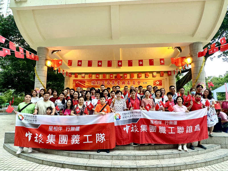 国庆期间,集团组织香港员工参加社区一系列活动,与香港市民、社会各界共庆祖国74周年华诞。 10月1日清晨,集团职工联谊会组织百余名员工到观塘双顺社区、港岛东爱秩序湾社区与市民一道参加社区“升国旗”仪式,共庆祖国生日,表达对祖国的崇高敬意和美好祝福。