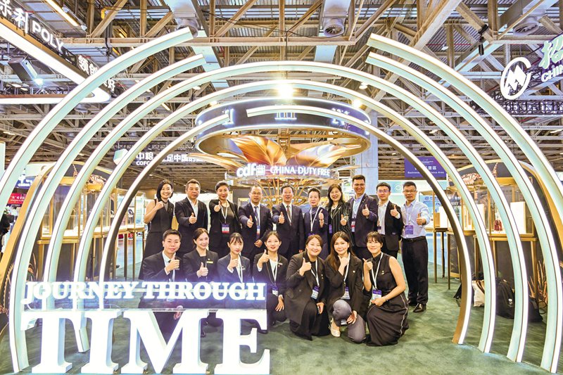展台占地80平米,划分珍贵腕表区、时尚配搭区和珠宝区三大区域,以绿金色为主色调,呈献多款时尚名表及首饰,展台入口组成发光隧道,让参观者仿佛踏上一场时光之旅,全面饱览中免多款经典腕表品牌。中免国际充分利用高品会这一国际交流平台,与受众共同探索腕表品牌的无限可能性,提升集团境外品牌知名度,链接更多海内外潜在合作伙伴,为集团业务发展开拓新契机、注入新活力。