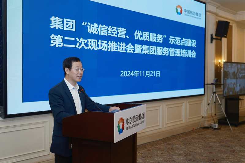 范云军在讲话中总结回顾了“诚信经营、优质服务”示范点建设工作取得的阶段性成绩,指出了当前工作存在的差距和不足,对“诚信经营、优质服务”示范点建设和服务管理工作提出三方面要求。一是提高站位、凝聚共识,在推动集团发展、提升服务质量上彰显更大作为。要切实以提升中国旅游业的发展质量为己任,扎实提升核心能力。二是系统思考、勇于创新,以客户为中心逐步优化完善服务体验管理体系。要尊重客户需求,以更宽阔的角度思考客户需求、提升服务能力。三是健全机制、知行合一,提高体验管理能力、解决实际问题和创造实效的能力。要建立有竞争力的体制机制,确保服务管理要求落实到位。