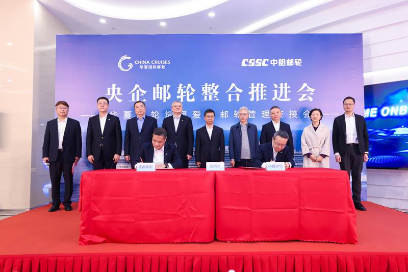 12月27日,央企邮轮整合推进会暨华夏国际邮轮增资爱达邮轮管理交接会在上海宝山区新业坊源创全球科创示范区中船邮轮总部举行。国务院国资委改革局局长林庆苗,上海市经信委副主任、一级巡视员戎之勤,宝山区委书记李晨昊、副区长丁力,中国船舶集团董事长徐鹏、总会计师贾海英,集团董事长王海民、董事兼华夏国际邮轮董事长石善博出席本次会议。