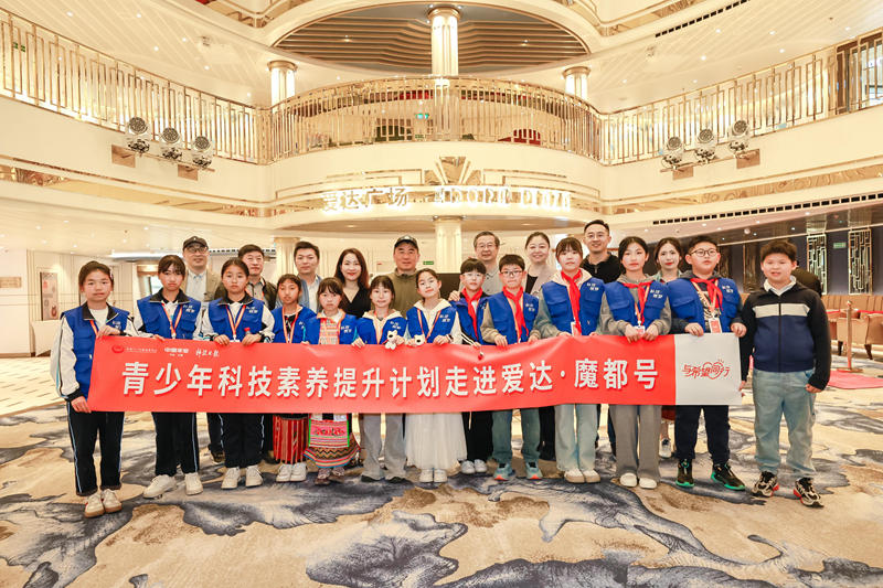 近日,爱达邮轮携手中国下一代教育基金会举办“青少年科技素养提升计划——走进爱达•魔都号”活动,助力乡村少年逐梦启航。作为“爱达山海情”行动计划的重要组成部分,此次活动邀请来自云南、河南及上海的 30 余名师生登上首艘国产大型邮轮爱达・魔都号,开启一场科技研学之旅,师生们参观了爱达•魔都号念念敦煌艺术画廊以及邮轮设施,近距离感受大国重器的魅力。