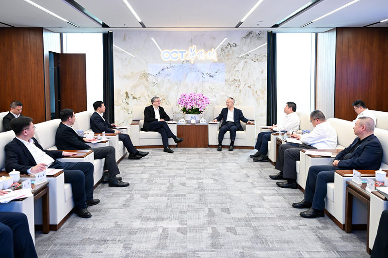 5月8日,集团董事长王海民、总经理范云军在深圳拜会华侨城集团董事长张振高、总经理刘凤喜。双方分别介绍有关情况,围绕文旅行业发展、主题公园项目、市场转型发展等方面展开交流,并就未来加强合作及落实相关工作安排达成共识。华侨城集团副总经理倪征,集团副总经理吴强,以及双方有关单位负责人参加会见。