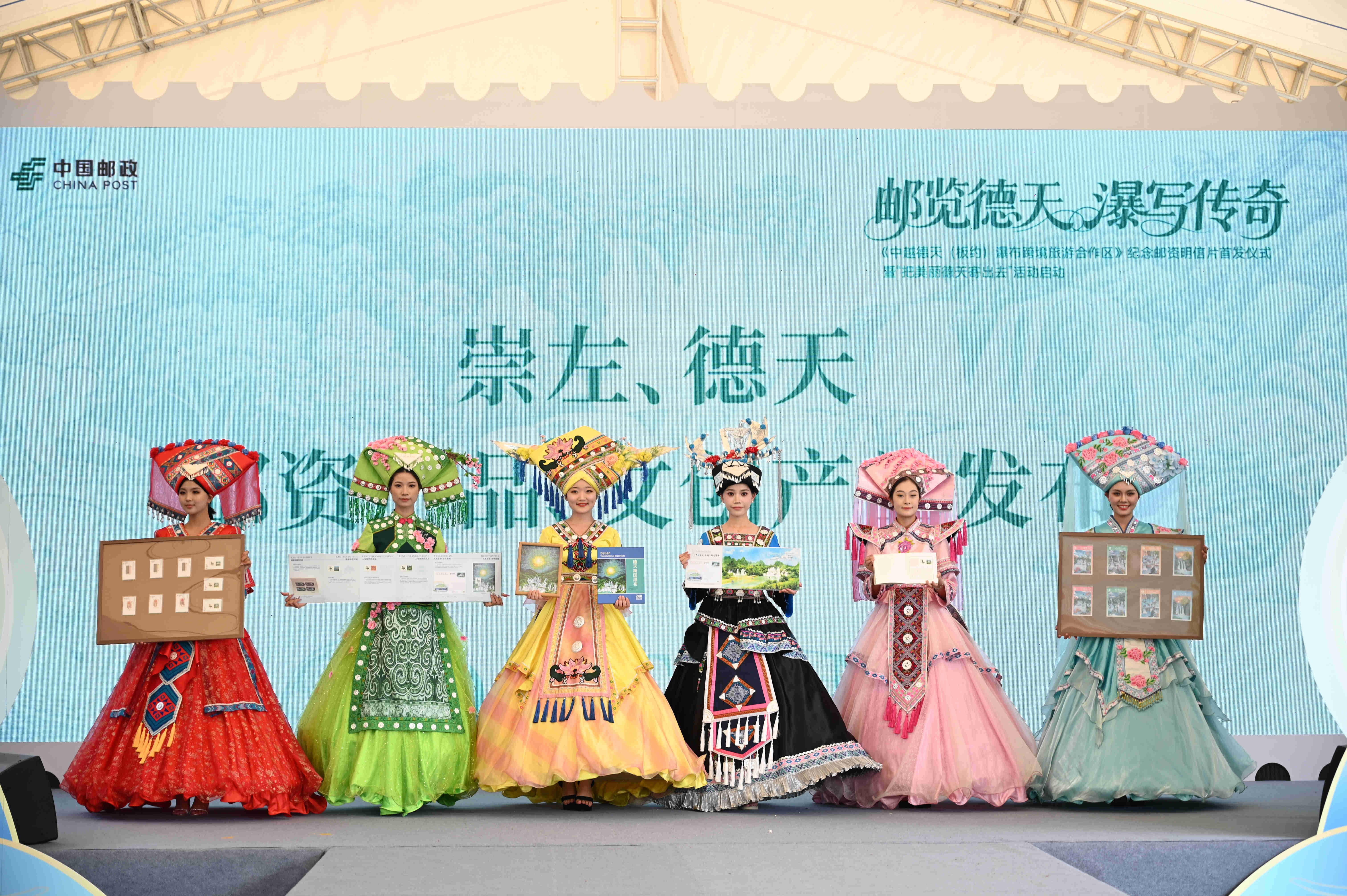 9月15日,《中越德天(板约)瀑布跨境旅游合作区》纪念邮资明信片首发仪式暨“把美丽德天寄出去”活动在开云国际所属德天景区正式启动,现场发布纪念邮资明信片等系列文创产品。