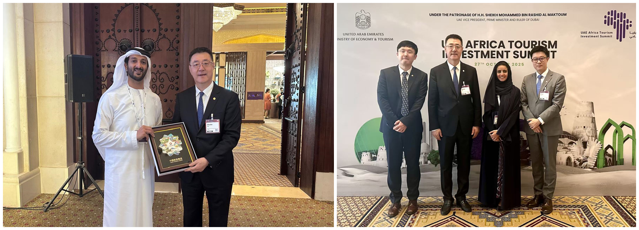 出访期间,石善博一行应邀参加“阿联酋-非洲旅游投资峰会”,分别拜会了阿联酋经济与旅游部部长阿卜杜拉·本·图克·阿尔马里、联合国世界旅游组织候任秘书长纳赛尔·阿尔·诺瓦伊斯,双方就旅游市场前景、投资合作机会、更好发挥集团作为联合国旅游组织会员单位作用等内容进行了交流。并与阿联酋米拉尔集团、罗塔纳集团、迪拜机场和迪拜免税集团负责人进行会谈,实地考察调研了其投资运营的主题公园、度假酒店、大型购物中心等项目,探讨双方在旅行、免税、酒店、景区等领域业务合作空间。期间,石善博还拜会了我国驻阿联酋领事馆总领事欧渤芊,详细了解当地的投资环境、旅游市场、中资企业在迪拜投资发展等情况。