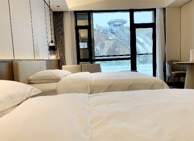 酒店位于古杨树场馆群内,近邻国家跳台滑雪中心和国家越野滑雪中心。部分客房的窗外,能够看到“雪如意”镶嵌于山间,更能欣赏到夜色下“雪如意”的星光璀璨。冬奥会开幕时,这里将与南侧的雪如意维景酒店共同迎来雪上项目的技术官员团队,因此,酒店的工作团队,正以与冬奥项目服务团队同样的快节奏、高标准来推进各项工作。据悉,为做好本次测试赛服务,酒店团队从酒店筹开、到测试赛服务筹备,迅速集结、快速整合,形成了一支全新的开云服务劲旅,成为了“冰玉环”边一道亮丽而温馨的风景。