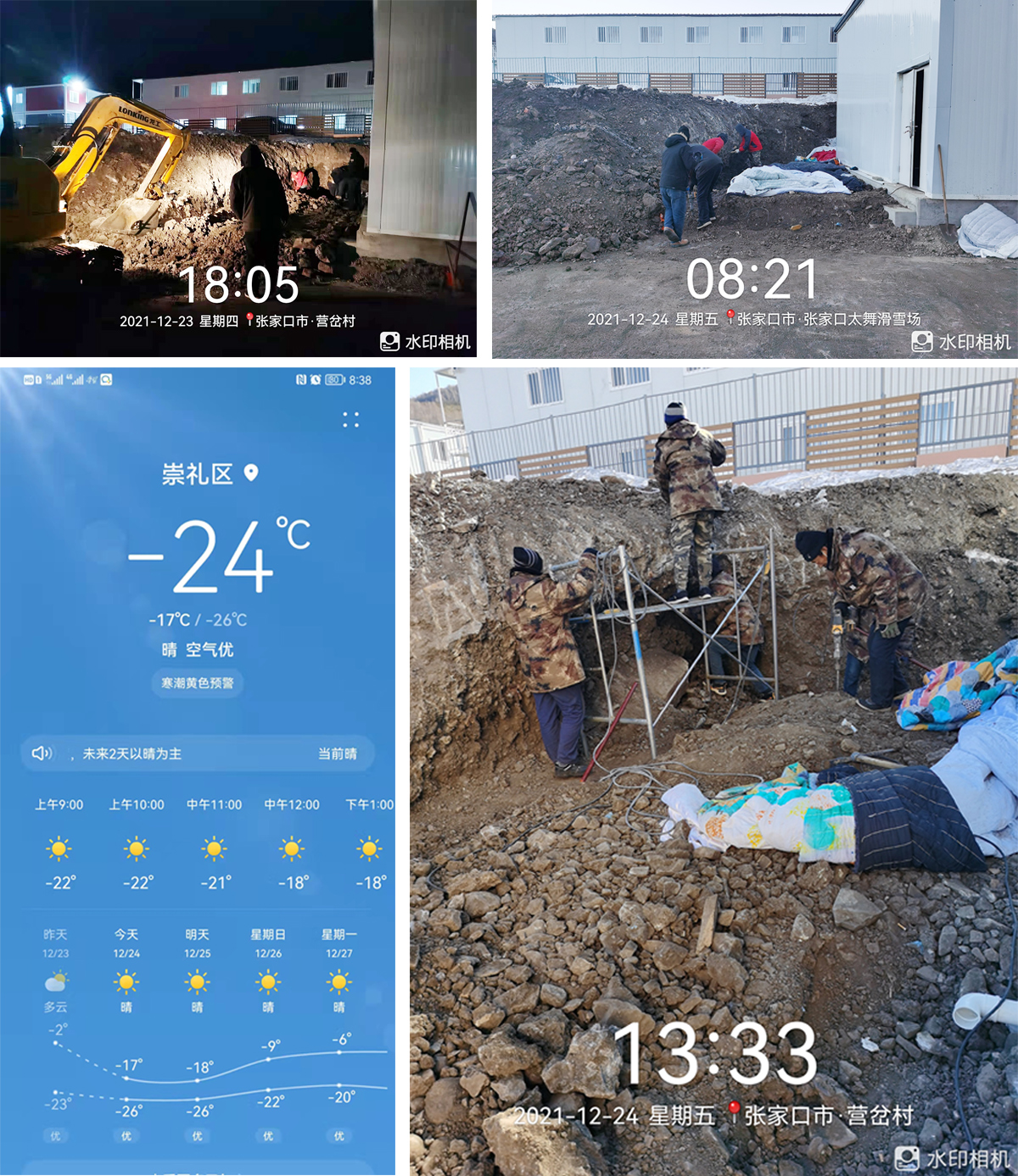 开云酒店建设发展部高欣、陈厚江等组织施工方冒着低温改造锅炉储水设施