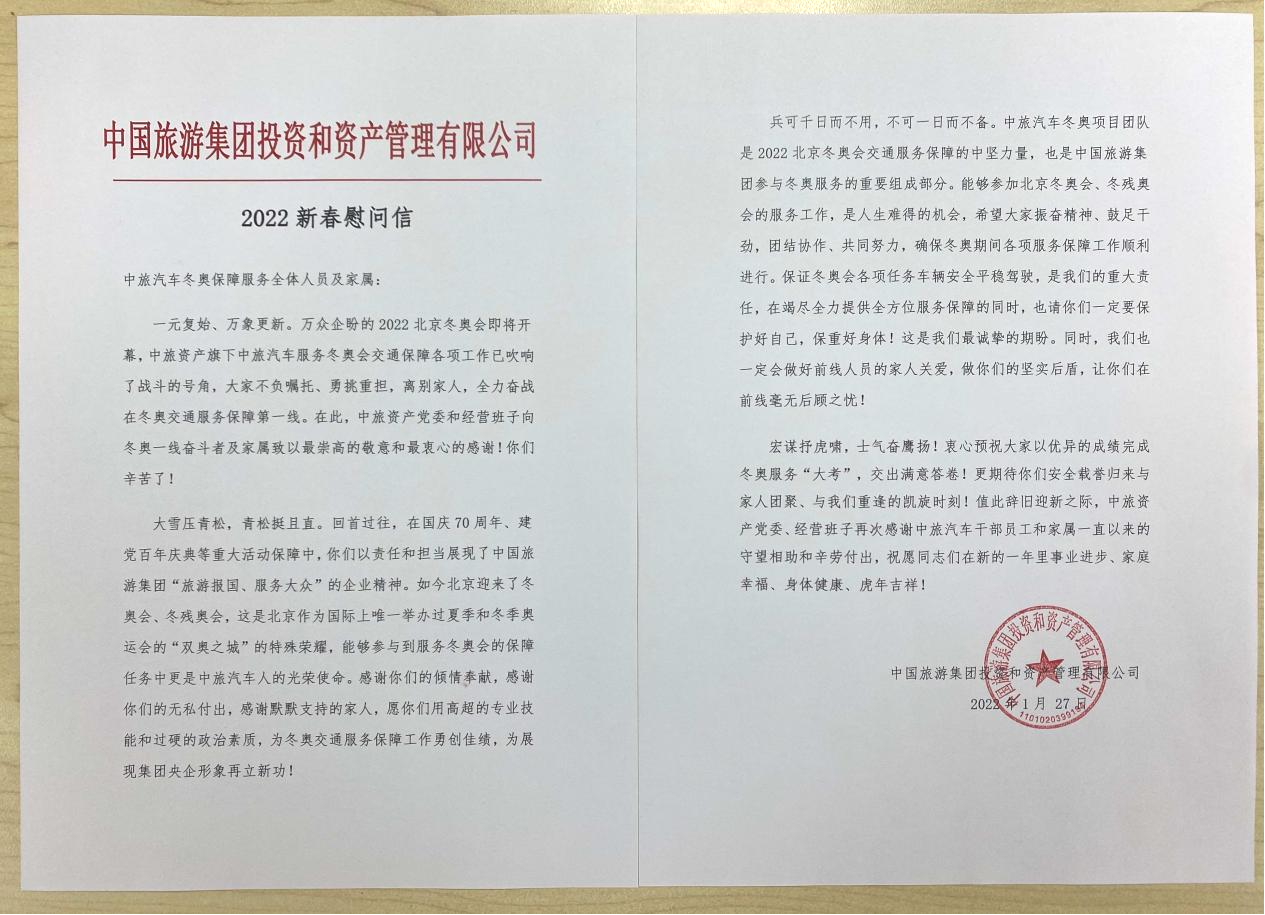 开云资产近日向开云汽车冬奥交通服务保障全体人员及家属发出“致冬奥奋斗者新春慰问信”。